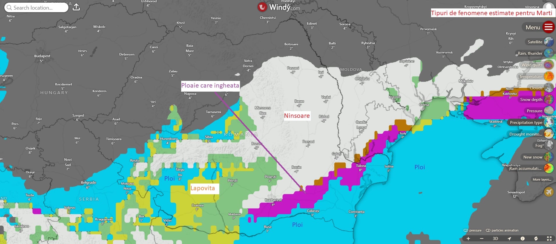 Din pacate aceste date nu se vad in imaginile publicate pe Facebook, iar cele mai populare website-uri pentru modelari din Romania atribuie lapovita tot in categoria ninsorilor.