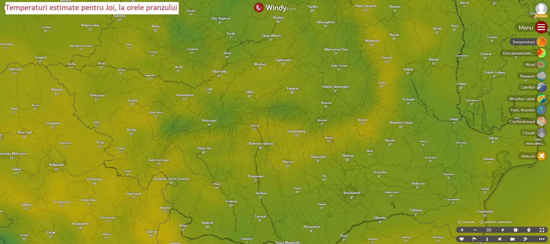 Valori mai ridicate vom vedea prin sudul tarii, dar chiar si in acest caz, valorile scad pe masura ce avansam in Campia Romana. Un alt exemplu poate fi cel al orasului Ploiesti, care inregistreaza valori de pana la 10 grade Celsius, in vreme ce Bucurestiul inregistreaza maxime ceva mai moderate.