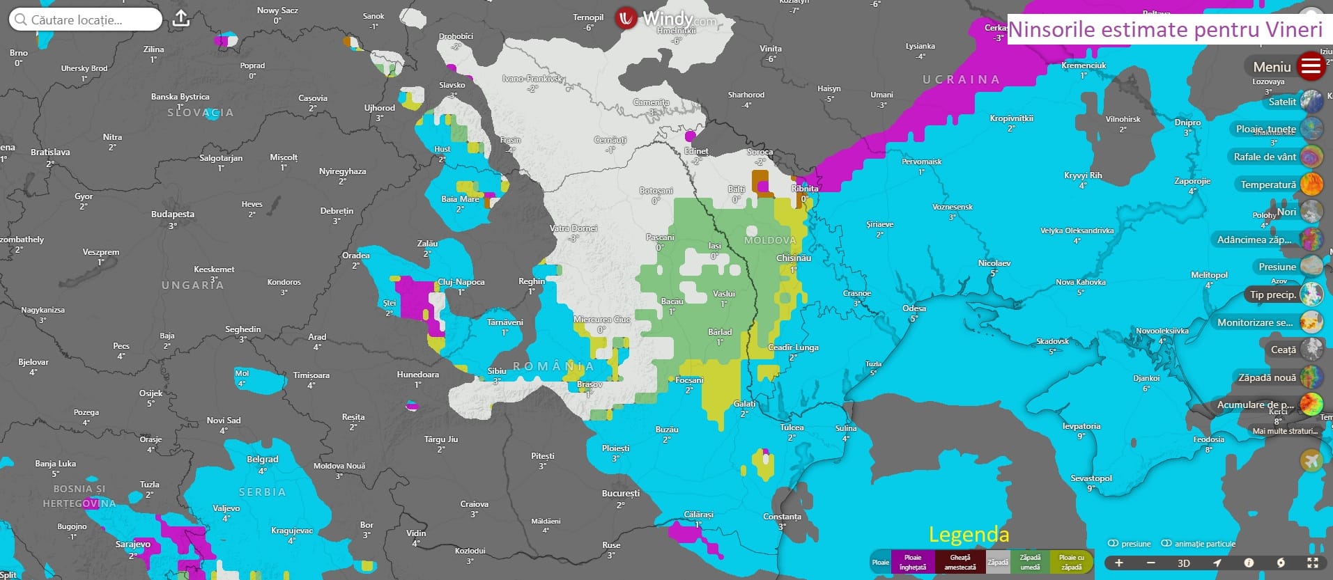 O schimbare a aparut in rularile modelarilor in aceasta dimineata. In conditiile in care pe parcursul saptamanii viitoare vor sosi 2 cicloni mediteraneeni (fiind posibili chiar 3), masa de aer rece de la Nord-Est de noi va fi antrenata din nou spre sud. Din aceasta cauza, al doilea ciclon pare sa gaseasca temperaturi favorabile ninsorilor in zona Moldovei incepand de Vineri.