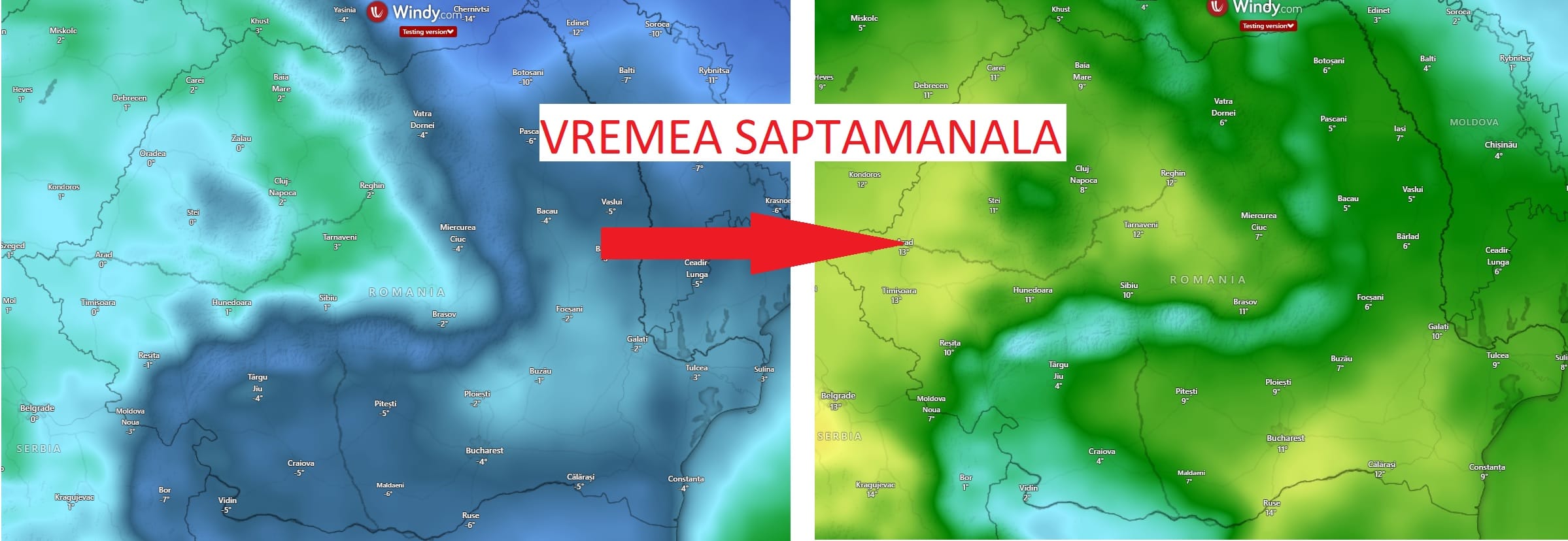Totusi, avem o problema: anticiclonul este extrem de slab si va impins spre zona Asiei. In aceste conditii, vremea se va incalzi sustinut, intrucat tara noastra va ramane sub influenta aerului cald dinspre Mediterana. Ciclonii atlantici vor avansa cu putere, urmand sa impinga masa rece.