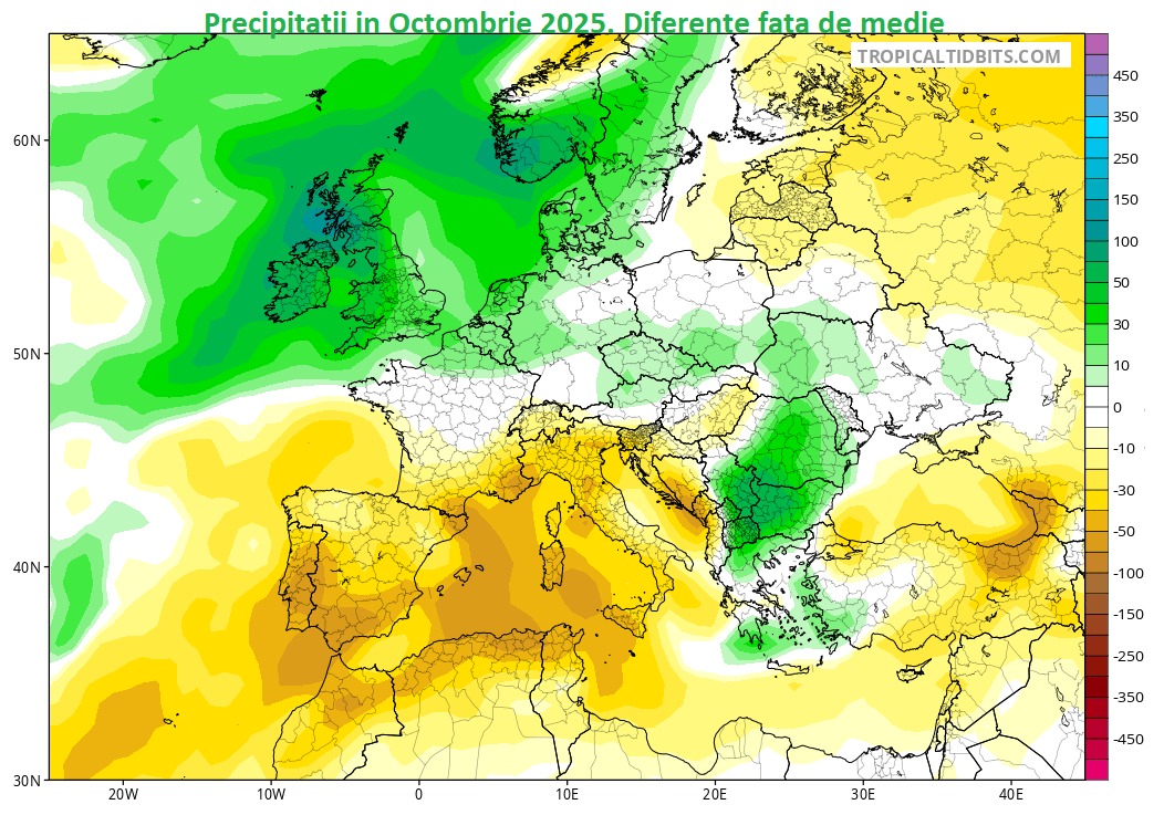 Astfel, consideram ca Octombrie va aduce o medie de precipitatii excedentara. Tara noastra tinde sa prospere atunci cand tiparele sunt schimbatoare, deoarece slabiciunea circulatiei regionale permite aparitia ploilor, la tranzitia de la un tipar la celalalt.